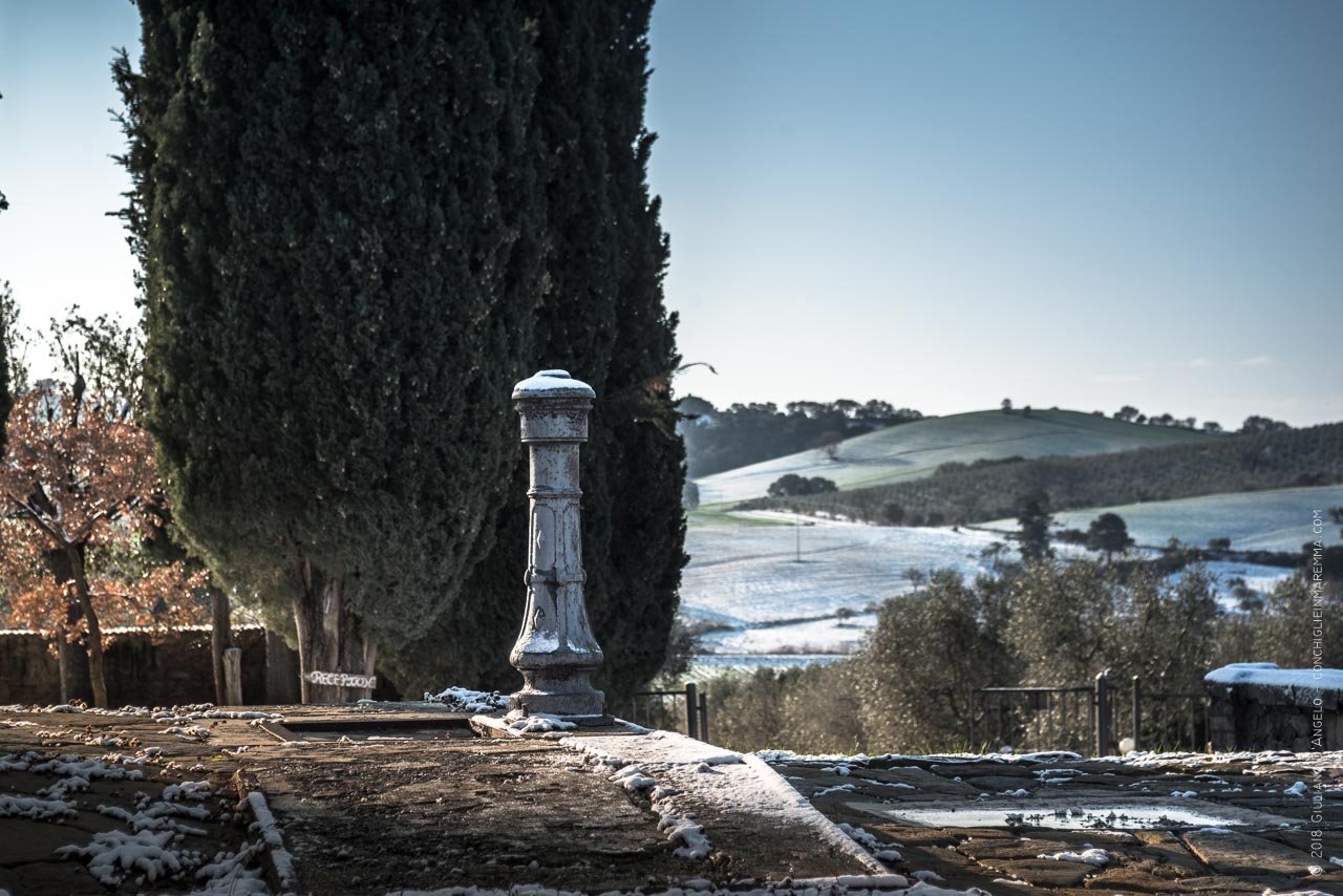 Ecco il paesaggio dai riflessi metallici che abbiamo scoperto stamattina poco dopo l'alba; dal poggio e nei dintorni di Poggio Cavallo. Poteva nevicare molto di più per il freddo che è arrivato stavolta in Maremma. Ma vogliamo bene ai nostri olivi e il ricordo della straordinaria (e disastrosa) nevicata dell '85 smorza l'entusiasmo di questa innegabile bellezza.